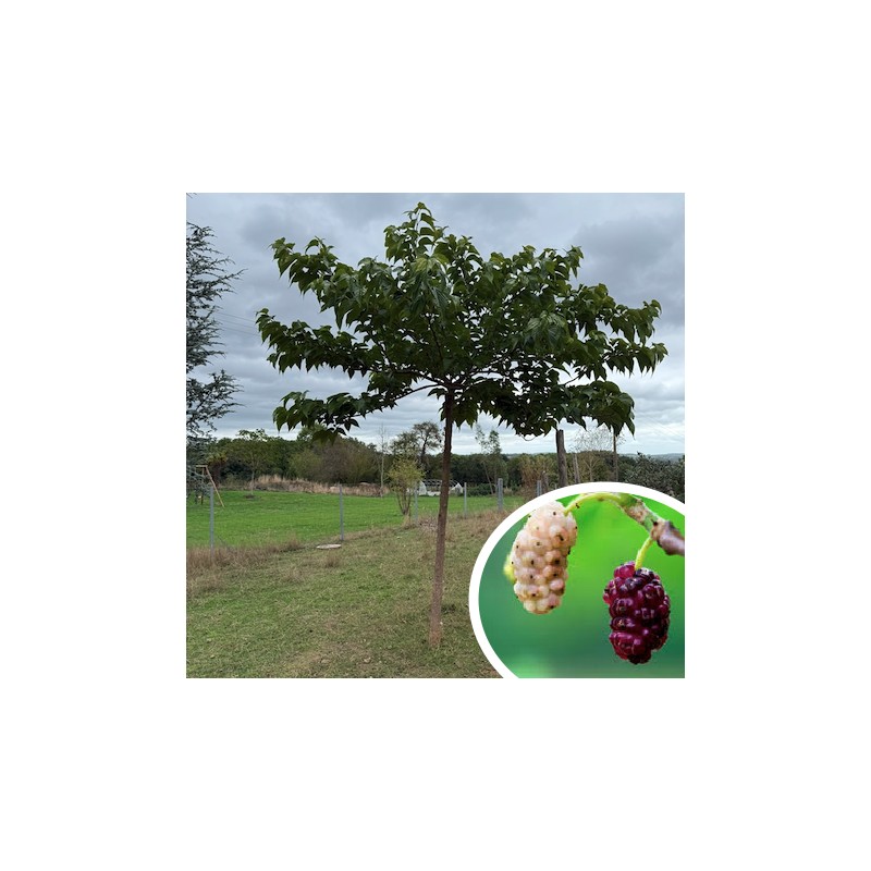 Ce murier est un bon arbre d'ombrage à croissance rapide, au port bien étalé mais assez irrégulier, et ses feuilles fournissent de l'ombre. Il produit de petites mûres blanches devenant rouge foncé à maturité, elles sont comestibles. Beau feuillage doré en automne.